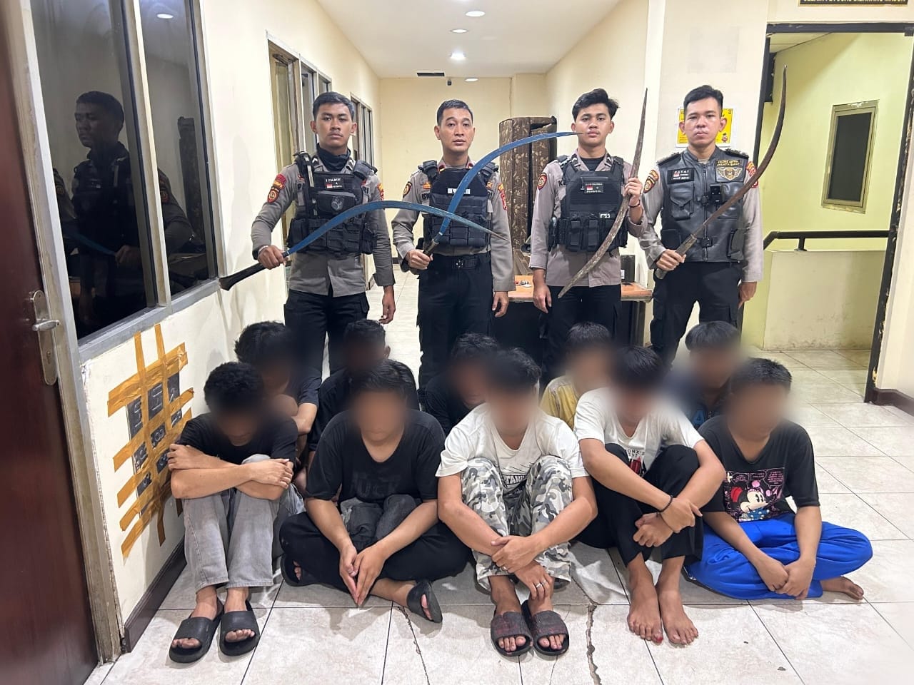 Dengan sigap, Tim Patroli Perintis Presisi berhasil memberhentikan dan mengamankan beberapa pemuda dari kelompok tersebut.