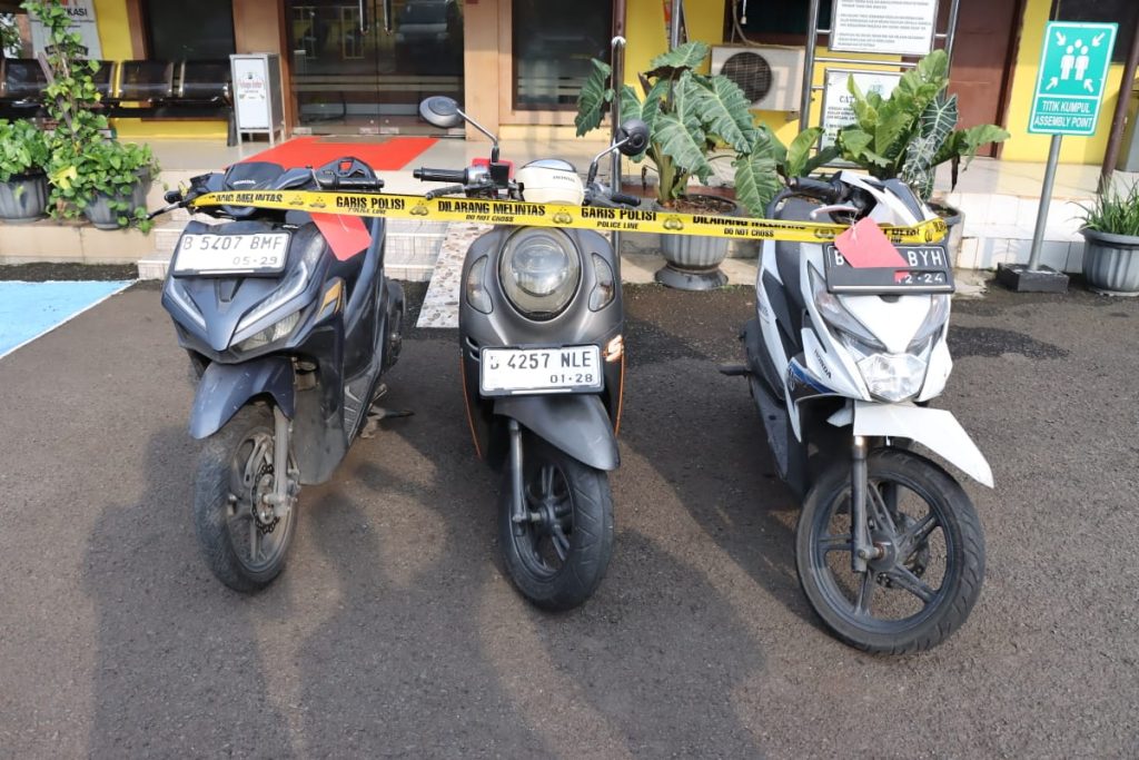 Dari lima orang yang diamankan, 2 (dua) di antaranya bertindak sebagai eksekutor, yaitu R (28), A (22), sedangkan F (25) bertindak selaku pilot dalam melakukan aksi pencurian sepeda motor
