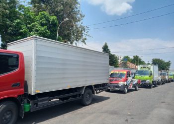 Puluhan kendaraan angkutan antri uji KIR di Dinas Perhubungan Kabupaten Sidoarjo, Selasa (11/4/2023) (Ft: Nugroho). DETEKSIJAYA.COM - Jelang lebaran tahun...