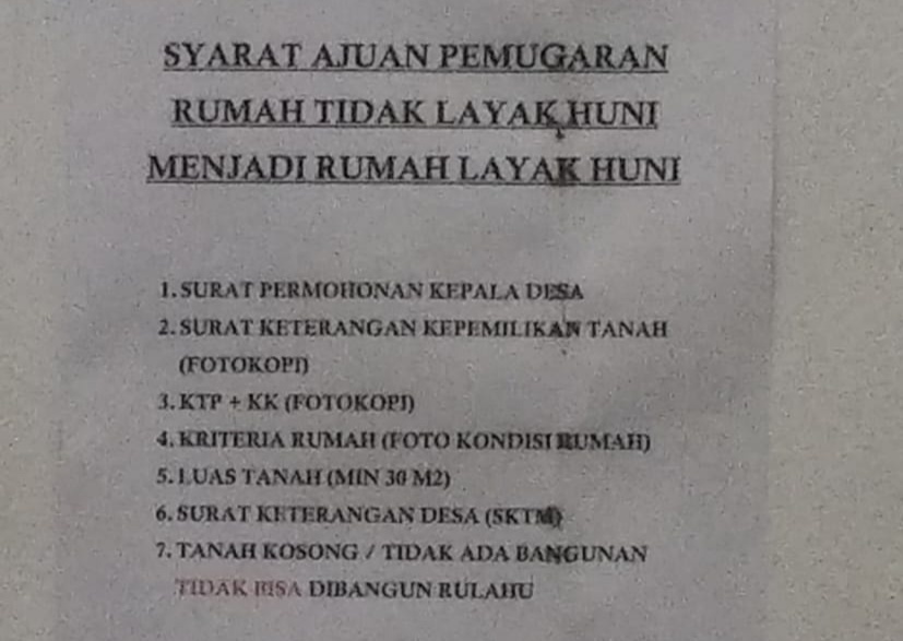 Program perbaikan tersebut  sangat membantu warga miskin untuk mendapatkan Rulahu (rumah layak huni). Salah satu persyaratan penerima perbaikan kualitas Rulahu yakni, tidak boleh dibangun di tanah kosong/tidak ada bangunan.