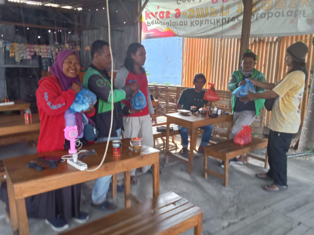 Sementara pak Rofik (56) warga Sugihwaras salah satu driver ojol (Gojek) mengatakan , Alhamdulillah, saya senang dengan pemberian sembako dari mas- mas dan mbak-mbak, dapat membantu meringankan kebutuhan di rumah. Semoga mas- mas dan mbak-mbak wartawan di berikan kesehatan dan Rizki yang barokah. Aamiin Ya Rabbal Alamin.@nug