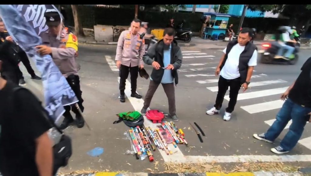 Jakarta Barat, DETEKSIJAYA.COM – Polsek Metro Tamansari Jakarta barat mengamankan 30 buah kembang api, 15 batang bambu atau pipa panjang, 15 bendera kelompok, hingga satu buah senjata tajam jenis samurai.