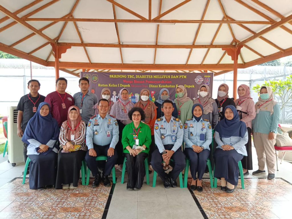 Turut Hadir Kepala Rutan Kelas I Depok, Andi Gunawan melalui Kepala Seksi Pelayanan Tahanan, Widhi Ideranianto Prayitno dengan didampingi Kepala Subseksi Administrasi dan Perawatan, Nur Mariyana Putri beserta Koordinator P3M Dinas Kesehatan Kota Depok, dr.Tiur Febrina Pohan dan Koordinator Pencegahan dan Pengendalian PTM Dinas Kesehatan Kota Depok, dr. Dharmaningsih melihat langsung jalanya kegiatan.
