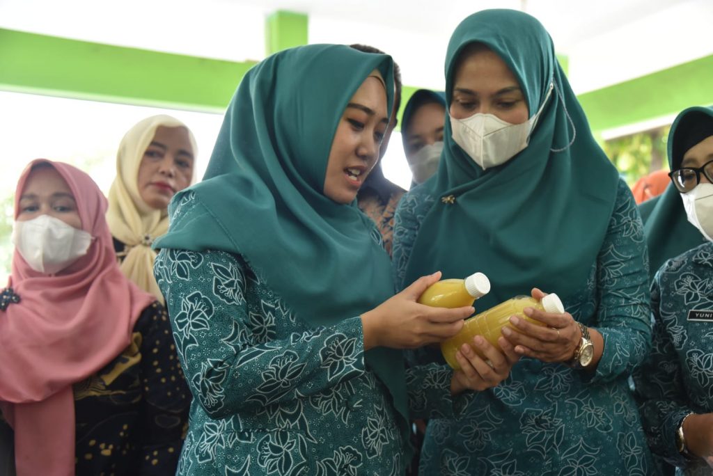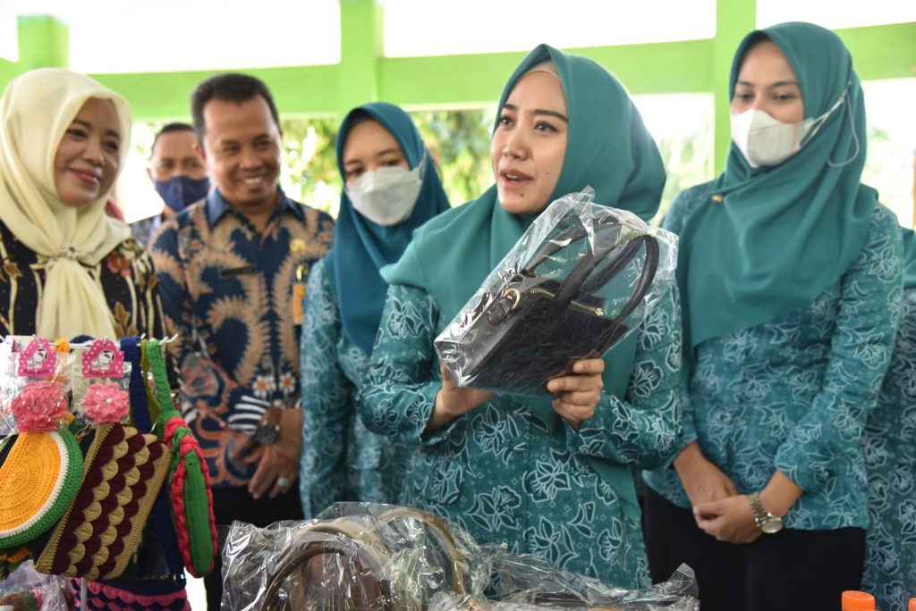 Kegiatan tersebut juga diisi dengan pameran produk unggulan dari Kelompok Usaha Perempuan Mandiri/Kurma masyarakat Kecamatan Porong. Bermacam-macam produk ditampilkan. Mulai dari produk makanan dan minuman, sampai produk kerajinan seperti sepatu, tas maupun batik. Bahkan Ning Sasha menyempatkan membeli beberapa produk-produk tersebut. (Nug)