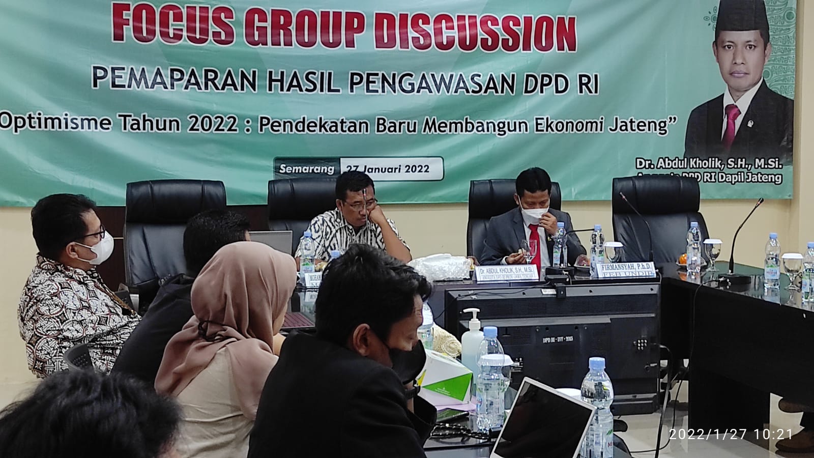 Hal itu ditegaskan Abdul Kholik dalam forum diskusi terbatas (FGD) yang membahas hasil temuan pengawasan pembangunan yang dilakukan oleh DPD RI Jateng terhadap pelaksanaan dan hasil capaian pembangunan ekonomi (27/1/2022).