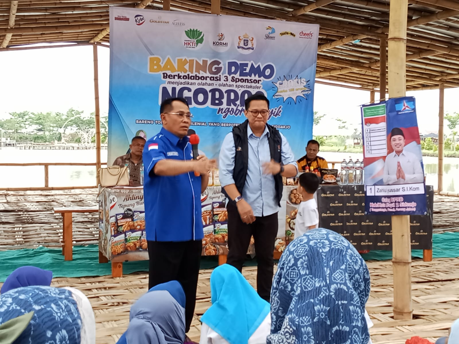 SIDOARJO,DETEKSI JAYA.COM – Guna memajukan UMKM, perempuan HKTI khususnya di Sidoarjo, bersama empat tokoh gelar baking demo yang berkolaborasi 3 sponsor menjadikan olahan- olahan spektakuler nertajuk “Ngobras”ngobrol asyik. Kegiatan yang bertempat di Yussar Fishing & Play Ground Desa Kalidawir Kecamatan Tanggulangin,diikuti puluhan pelaku UMKM perempuan HKTI Rabu (27/12/2023).