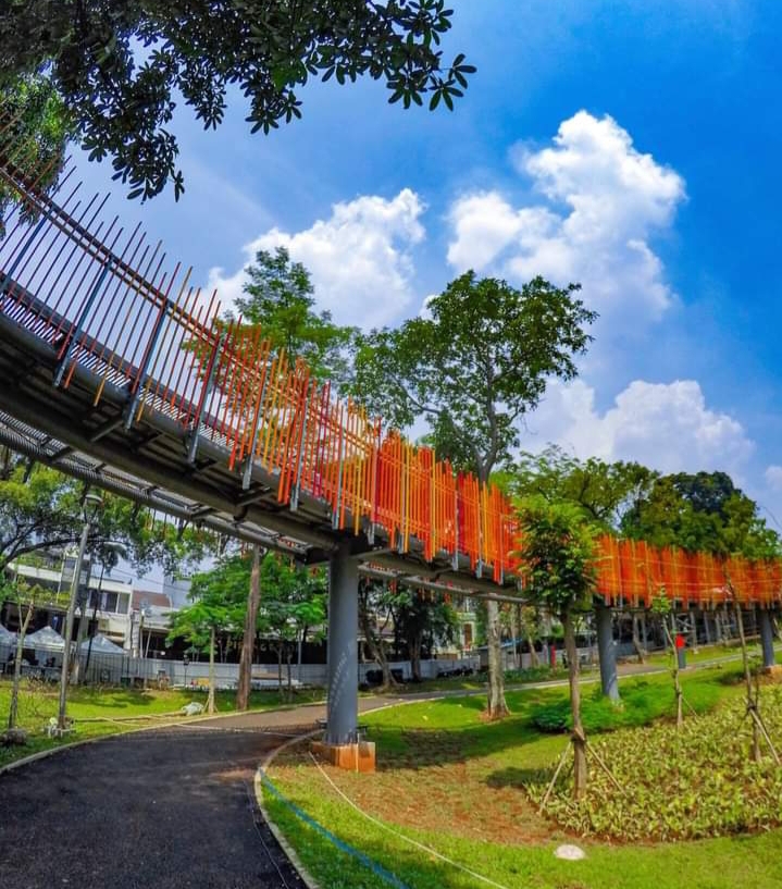 “Secara landscape, Tebet Eco Park memiliki dua sisi, utara dan selatan yang akan dihubungkan dengan jembatan merah-orange yang melingkar membentuk symbol infinity,” tutur Presiden Direktur PT Astra Land Indonesia, Wibowo Muljono.
