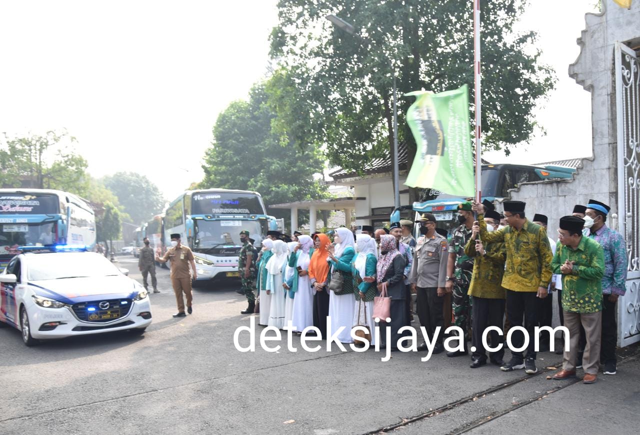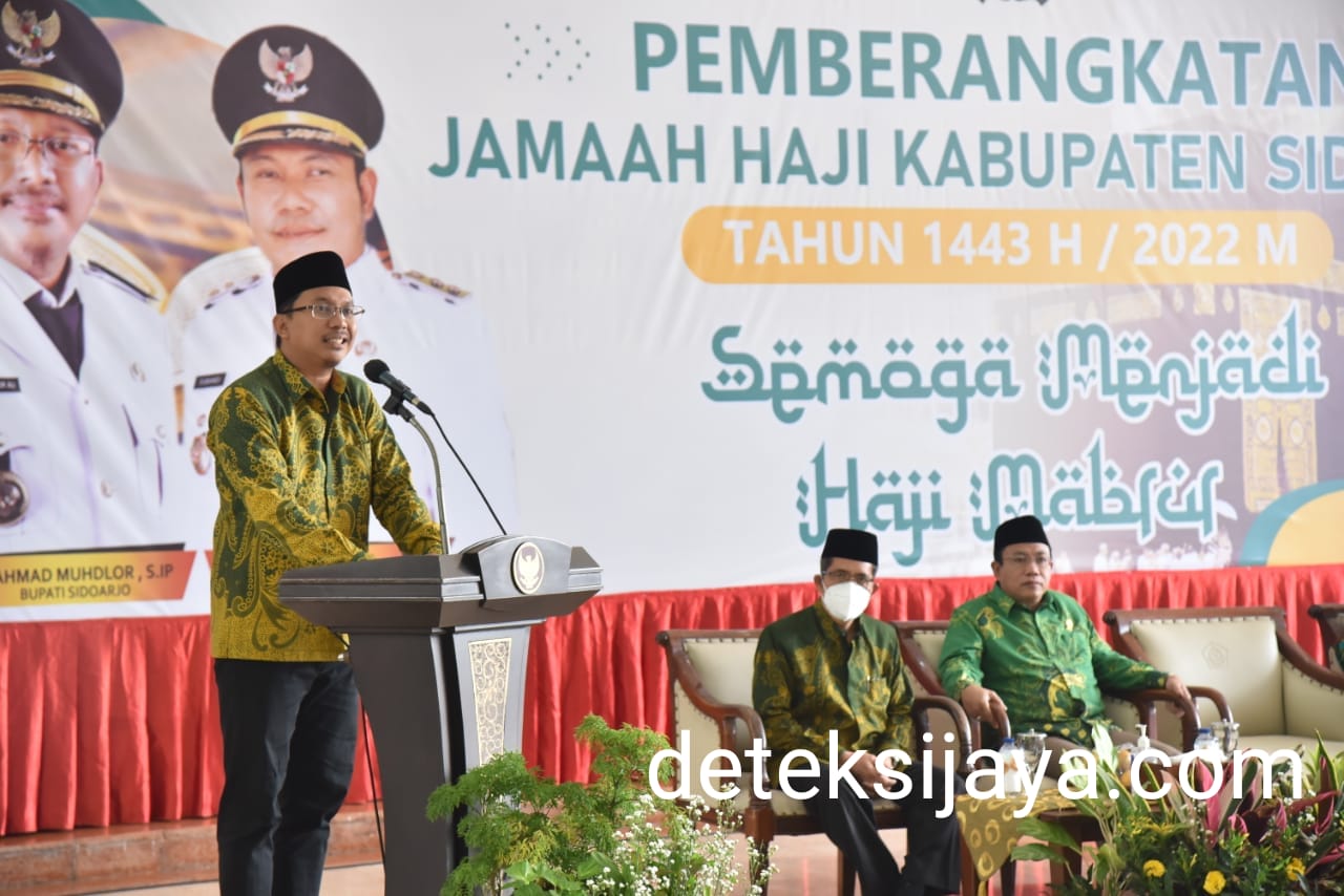 SIDOARJO I DETEKSIJAYA.COM – Bupati Sidoarjo H. Ahmad Mudhlor S.IP memberangkatkan kelompok Terbang (Kloter) 32 dan 33 CJH (Calon Jamaah Haji) , yang berjumlah 738 CJH.446 CJH dari Kloter. 32 dan 292 CJH dari Kloter.33. Para tamu Allah itu diberangkatkan dari Pendopo Delta Wibawa Sidoarjo , menuju embarkasi Surabaya sebelum menuju Mekah. Senin (27/6/2022) pagi.