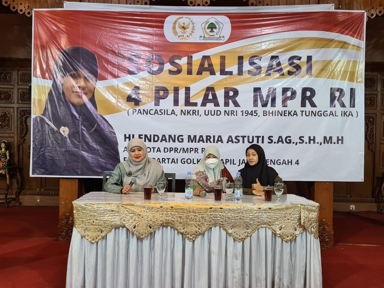 “Dalam kegiatan sosialisai empat pilar tersebut, Hj. Endang Maria Astuti, S.A.g, SH,.MH anggota MPR/DPR RI menyampaikan, sosialisasi empat pilar kebangsaan ini merupakan perintah negara atau tugasnya anggota DPR RI dan anggota MPR RI yang tertuang dalam Undang-Undang Nomor 42 tahun 2014 tentang MPR, DPD dan DPR RI, yaitu untuk mensosialisasikan empat pilar kebangsaan ini kepada seluruh masyarakat Indonesia, terutama masyarakat di Kabupten Wonogiri,” ungkap wanita politis Partai Golkar, yang duduk di komiai VIII DPR RI. dalam acara empat pilar. Sabtu, 4/5/22.