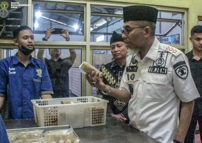 Didampingi Kakanwil Andika, Kadivpas Kusnali, dan Kalapas Veri, Irjen Razilu Akhiri kunjungan kerja dengan meninjau langsung area Blok Hunian Warga Binaan dan area Kegiatan Kerja Lapas Cikarang yang merupakan Lapas Industri baik dalam memproduksi alat-alat plastic seperti tempat makan, gelas, dan barang plastik lainnya, sampai dengan produksi bahan makanan seperti Roti, Tempe, dan sebagainya. (Bams)