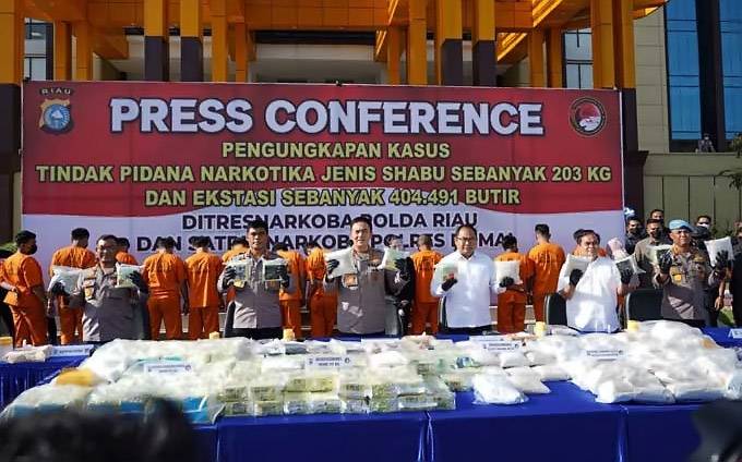 Kapolda Riau Irjen Pol Moh Iqbal dalam konferensi pers yang digelar di halaman Mapolda Riau pada Senin sore (19/9/2022) mengatakan, keberhasilan pengungkapan tersebut merupakan bukti jajarannya tetap menyatakan perang terhadap pengedar narkoba di wilayahnya.