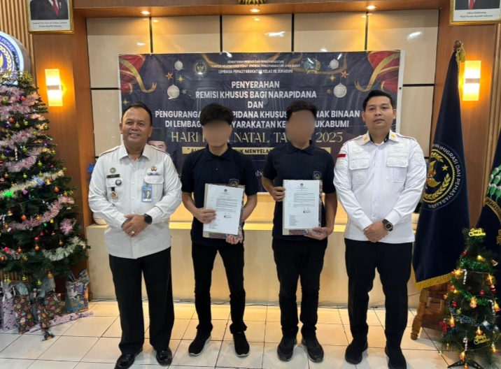 Sukabumi, DETEKSIJAYA.COM – 25 Desember 2025. Lembaga Pemasyarakatan (Lapas) Kelas IIB Sukabumi melaksanakan kegiatan Penyerahan Remisi Khusus (RK) Natal Tahun 2025 bagi Warga Binaan Pemasyarakatan (WBP) beragama Kristen, bertempat di aula Lapas Kelas IIB Sukabumi. Kegiatan berlangsung dengan tertib, lancar, dan penuh khidmat sebagai bagian dari pemenuhan hak warga binaan dalam rangka perayaan Hari Raya Natal.