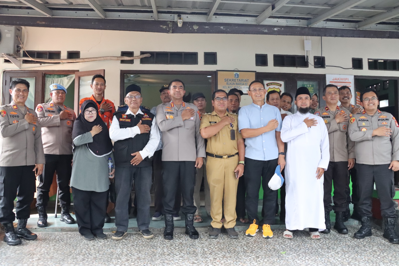 Tak sendiri, Kapolres hadir didampingi oleh Kasat Binmas Kompol Agung Nugroho, Kapolsek Kebon Jeruk Kompol Nur Aqsha Ferdianto, para pejabat utama Polres, PLT Lurah Kebon Jeruk Tubagus Masarul Iman, serta unsur Tiga Pilar, Satpol PP, Gulkarmat, Ketua LMK, Ketua RT/RW, tokoh masyarakat, dan relawan Citra Bhayangkara.