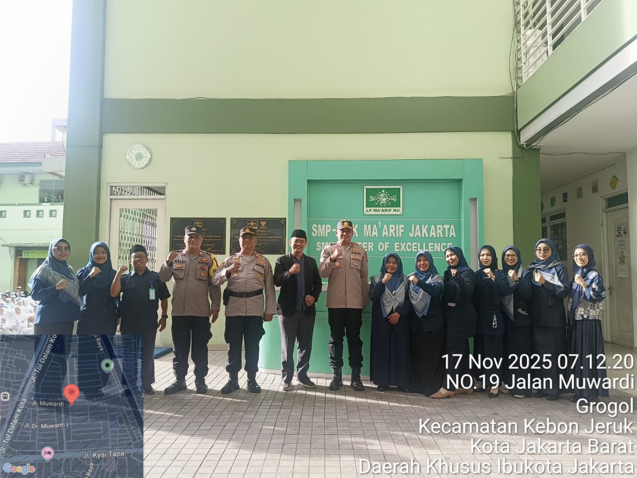 Kegiatan yang berlangsung di halaman sekolah ini turut dihadiri oleh Kepala Sekolah SMK Ma’arif, Ibu Hana Fauziah, S.S., M.M, Kapolsubsektor Kelurahan Grogol, Iptu Nuri Efendi, serta seluruh siswa-siswi SMK Ma’arif Grogol.