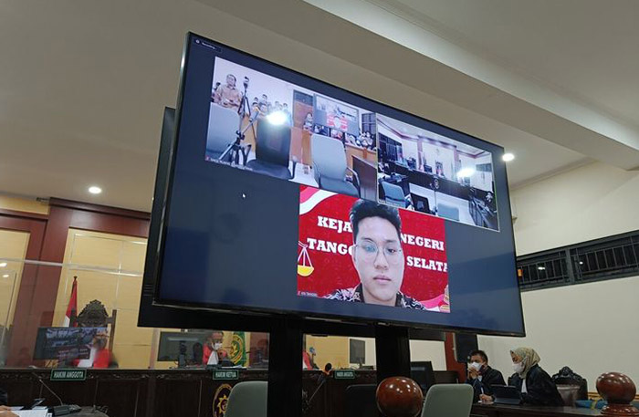 Adapun terdakwa Indra Kenz dihadirkan secara daring dari Rutan Salemba.