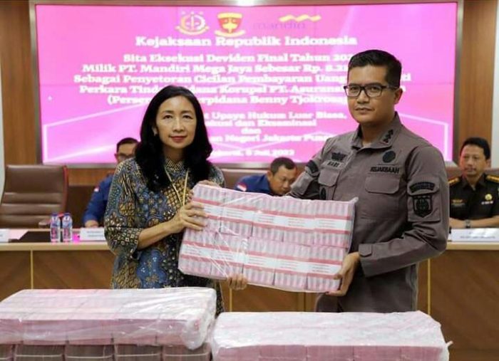 DETEKSIJAYA.COM – Bertempat di Aula Lantai 10 Gedung Menara Kartika Adhyaksa, Kejaksaan Republik Indonesia (RI) telah melakukan sita eksekusi Deviden Final tahun 2022 milik PT Mandiri Mega Jaya senilai Rp 8 Miliar lebih yang terafiliasi terpidana Benny Tjokrosaputro.