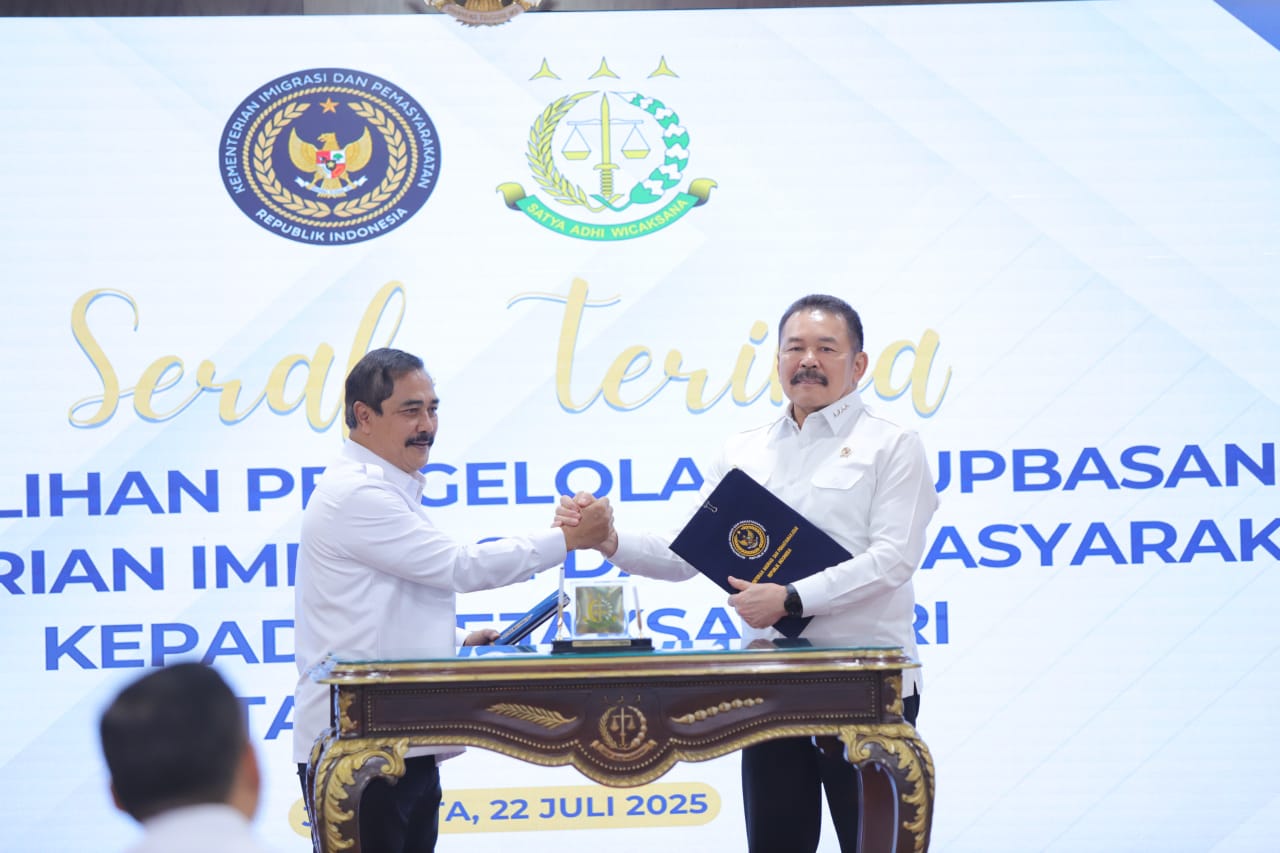 Jakarta, DETEKSIJAYA.COM – Kejaksaan Republik Indonesia secara resmi melanjutkan proses pengalihan pengelolaan Rumah Penyimpanan Benda Sitaan Negara (Rupbasan) tahap II dari Kementerian Imigrasi dan Pemasyarakatan (Kemenimipas). Acara seremonial pengalihan digelar di Lantai 11 Gedung Utama Kejaksaan Agung (Kejagung), Jakarta, pada Selasa (22/7/2025).