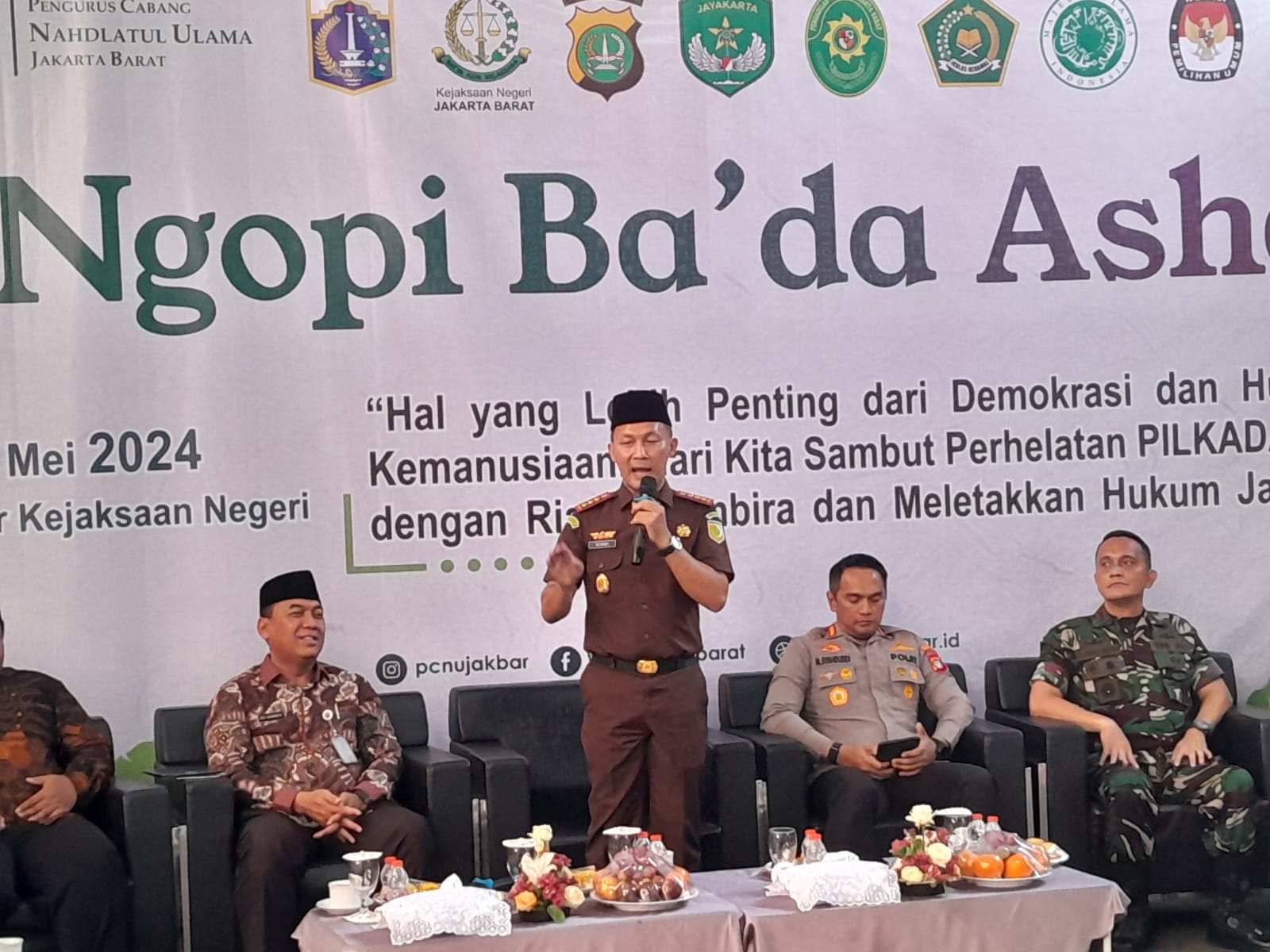 Acara bertajuk ‘Ngopi Ba’da Ashar’ tersebut diselenggarakan di halaman Kantor Kejaksaan Negeri Jakarta Barat, Jl. Kembangan Raya, Kembangan, Jakarta Barat, pada Kamis, 30 Mei 2024.