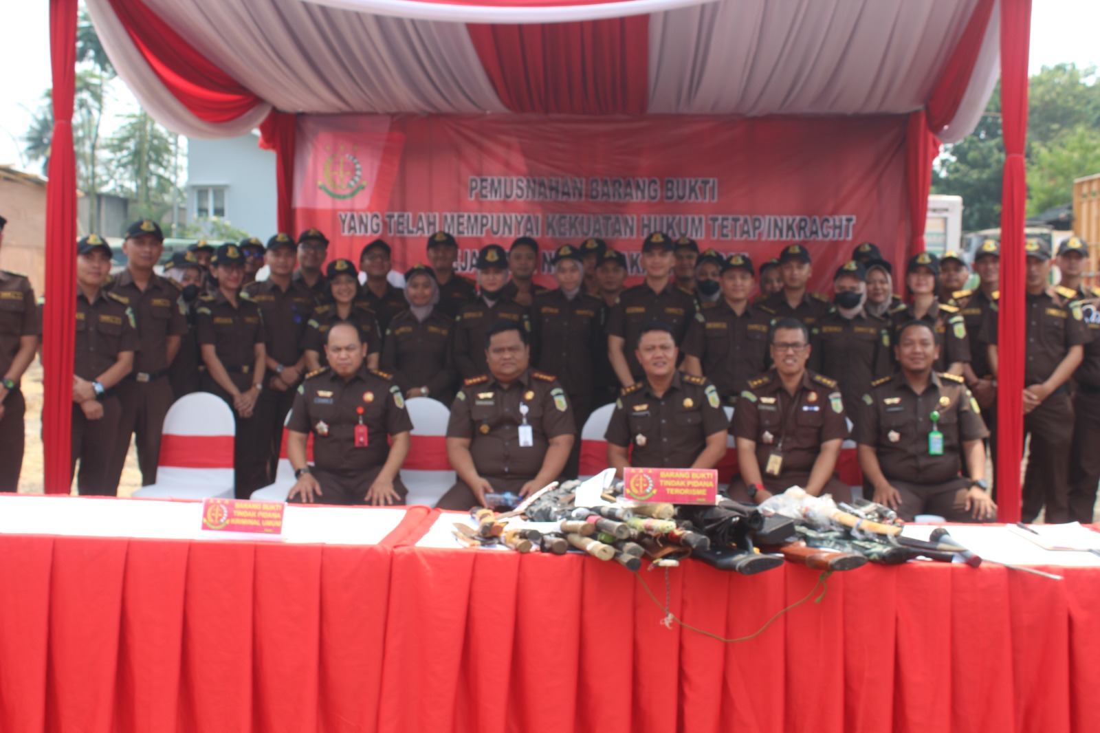 “Pemusnahan barang bukti tersebut diantaranya barang bukti Narkoba, terorisme, dan Perkara Tindak Pidana Umum lainnya,” kata Lingga. Senin (14/8/2023).
