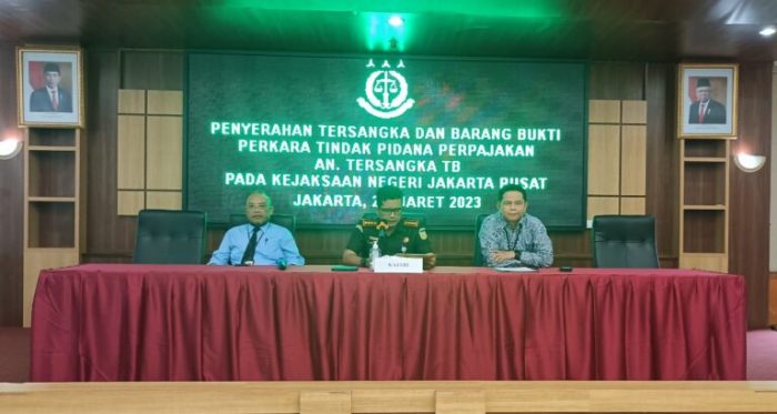 ”Pada hari Rabu tanggal 29 Maret 2023 Jaksa Penuntut Umum pada Seksi Tindak Pidana Khusus Kejaksaan Negeri Jakarta Pusat melaksanakan proses penyerahan tersangka dan barang bukti (Tahap II) atas nama Tersangka Drs. Tony Budiman dari Tim Penyidik Pegawai Negeri Sipil (PPNS) pada Kantor Wilayah Direktorat Jenderal Pajak Jakarta Pusat bertempat di ruang Seksi Tindak Pidana Khusus Kejaksaan Negeri Jakarta Pusat,” ujarnya.