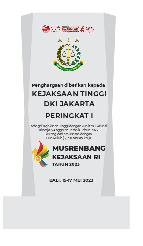 DETEKSIJAYA.COM – Jaksa Agung Muda Bidang Pembinaan (Jambin) memberikan penghargaan kepada Kejaksaan Tinggi (Kejati) DKI Jakarta dalam Kualitas Evaluasi Kinerja & Anggaran Terbaik Tahun 2022, untuk Satuan Kerja kurang dari atau sama dengan Dua Puluh (<20).