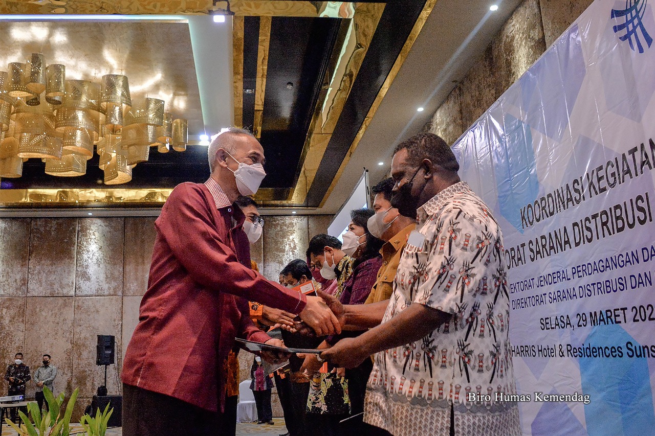 Penyerahan dilakukan secara simbolis kepada 10 kabupaten/kota oleh Direktur Jenderal Perdagangan Dalam Negeri Oke Nurwan pada Selasa (29/3/2022), di Denpasar, Bali.