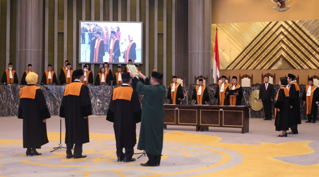 DETEKSIJAYA.COM – Ketua Mahkamah Agung Republik Indonesia (MARI), Prof. Dr. M. Syarifuddin, S.H., M.H., melantik dan mengambil sumpah 3 Hakim Agung pada Jumat, (09/6/2023).