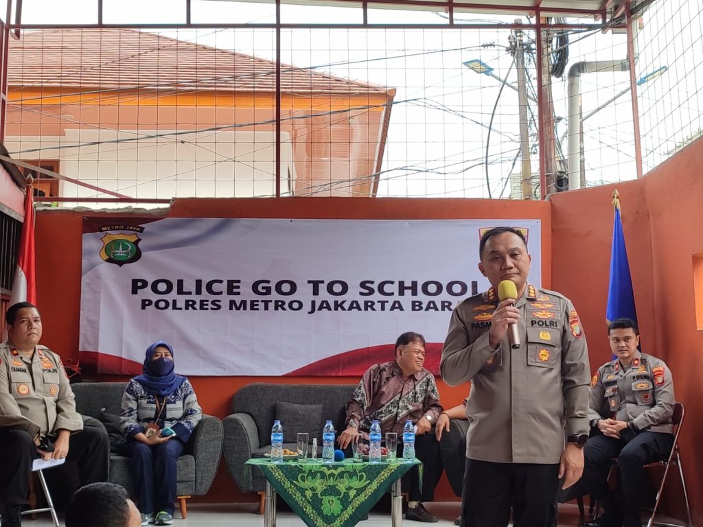 Oleh sebab itu dengan adanya program Police Go To School ini kami dari jajaran Polres Metro Jakarta Barat ingin memberikan edukasi dan dialog kepada para pelajar