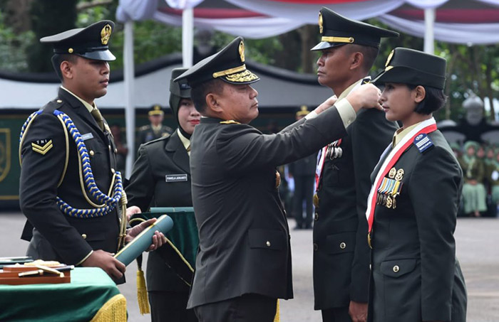 DETEKSIJAYA.COM – Kepala Staf Angkatan Darat (KSAD) Jenderal TNI Dudung Abdurachman melantik 1.092 Perwira Muda abituren Pendidikan Pembentukan Perwira (Diktukpa) TNI AD Program Diploma-3 (Ahli Madya) Gelombang II TA 2022 di Bumi Panorama Sekolah Calon Perwira Angkatan Darat (Secapaad) Bandung, Jumat (23/12/2022).