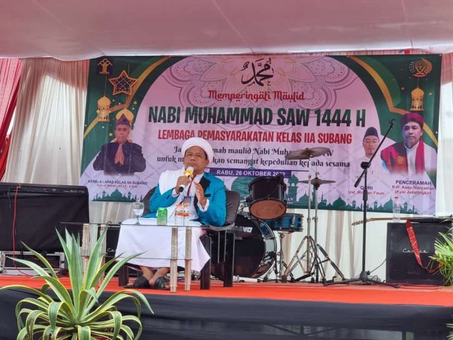 “Peringatan ini adalah satu refleksi dari kecintaan umat Islam terhadap Nabi besar Muhammad SAW dan di dalamnya kita diingatkan untuk tidak mementingkan diri sendiri tetapi lebih kepada kepedulian kita kepada sesama. Di samping itu, peringatan ini juga sebagai ajang sIlaturahmi antar pegawai dan warga binaan, serta memperat rasa kebersamaan di antara pegawai lapas,” tutur Cepi, Kepala Seksi Bimbingan Napi dan Anak Didik (Binadik) Lapas Subang.
