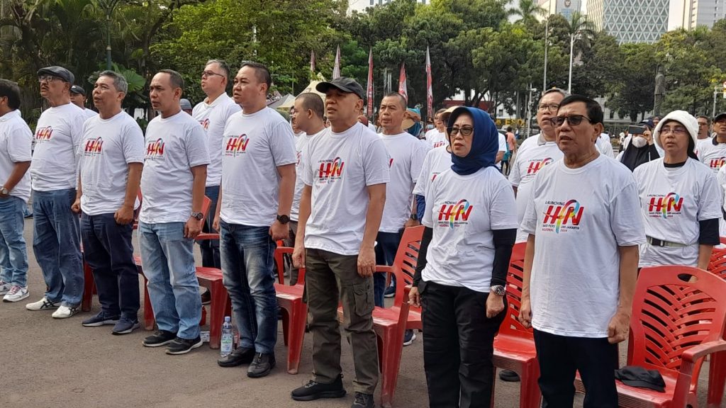 Jakarta-Menteri Koperasi dan UKM Teten Masduki bersama insan pers Ketua Umum PWI Pusat Hendry Ch Bangun dan Ketua Dewan Pers Ninik Rahayu melakukan jalan santai dari Silang Monas ke putaran Sarinah pergi pulang. Sesampai di Sarinah, para peserta jalan santai yang diikuti ratusan anggota PWI bersama masyarakat membentangkan spanduk tanda dimulainya Launching HPN 2024.
