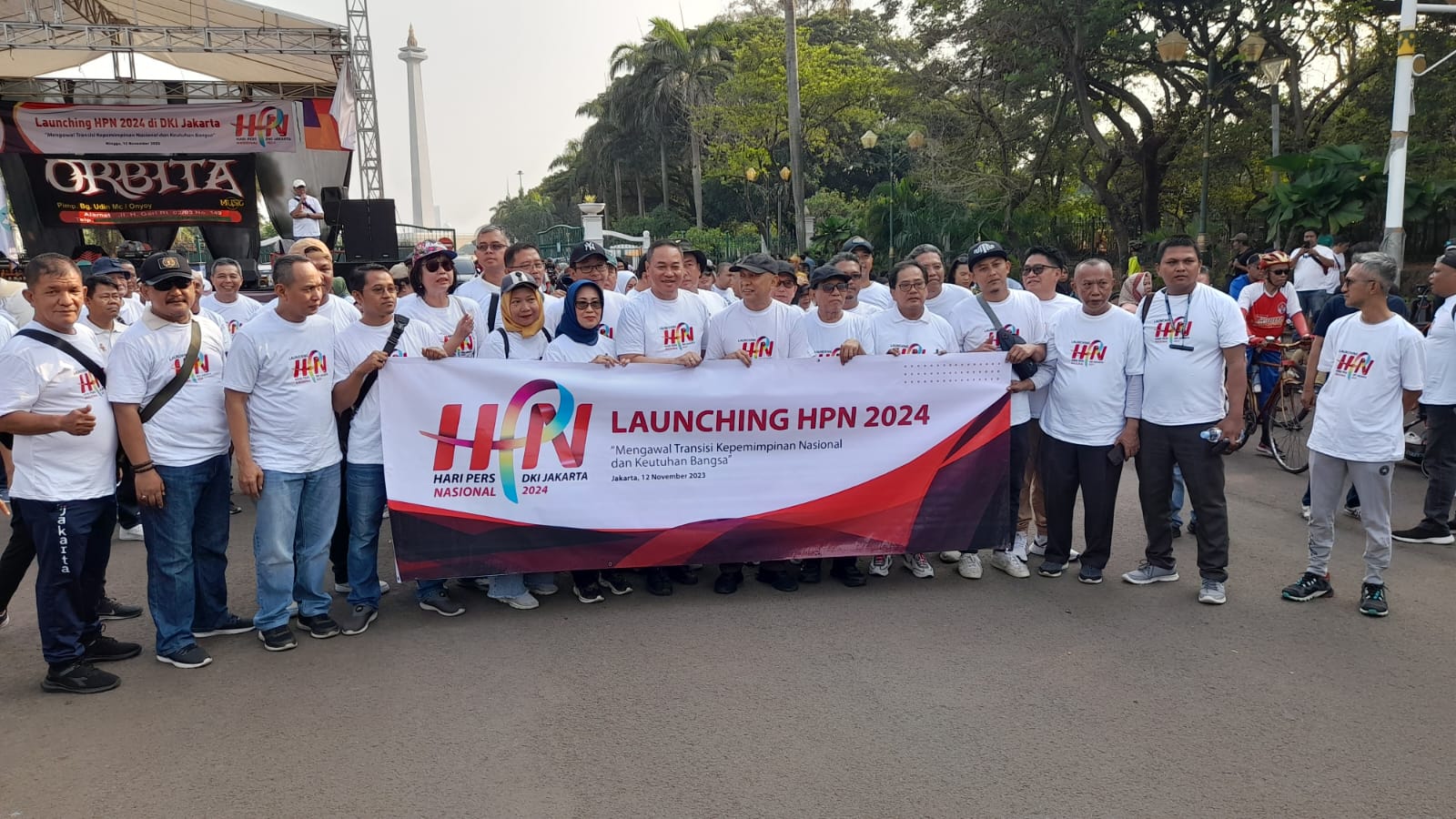 Jalan santai bersama Menteri Teten Masduki itu dilakukan sambil membawa spanduk yang bertuliskan “Mengawal Transisi Kepemimpinan Nasional dan Keutuhan Bangsa. Turut hadir dalam jalan santai ini, pengurus PWI dan pimpinan redaksi media massa, di antaranya Sekjen Sayid Iskandarsyah; Wasekjen Raja Pane dan Ketua Panpel HPN 2024 Marthen Slamet Susanto.