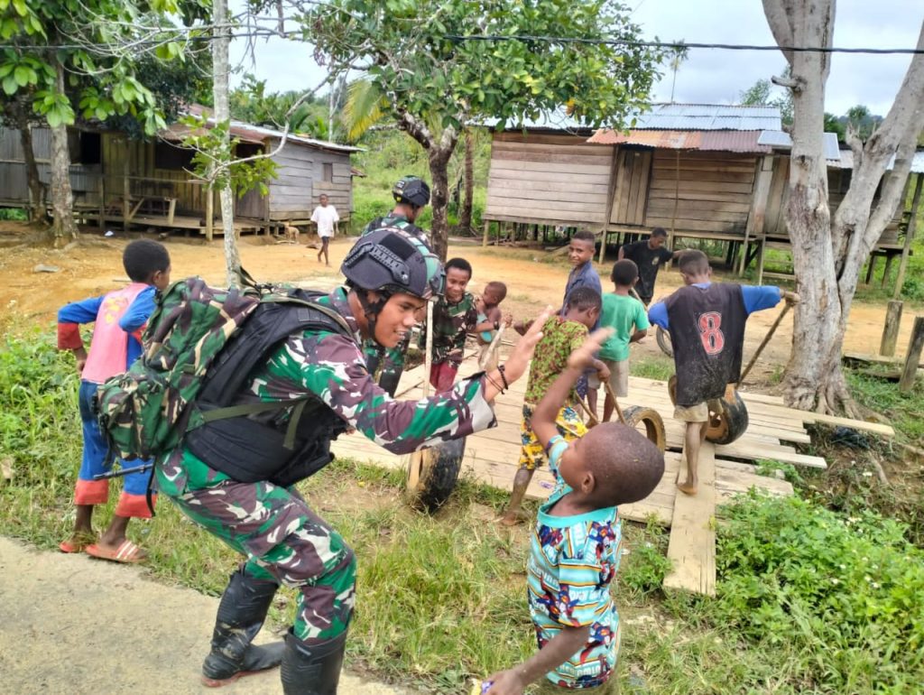 Dalam Perjalanan pulang Personel Pos Yuruf bertemu dengan Anak Anak Kampung Yuruf 2, Personel Pos, menyempatkan untuk bercengkrama, bermain bersama dan membagikan Permen kepada Anak anak di Kampung Yuruf 2.