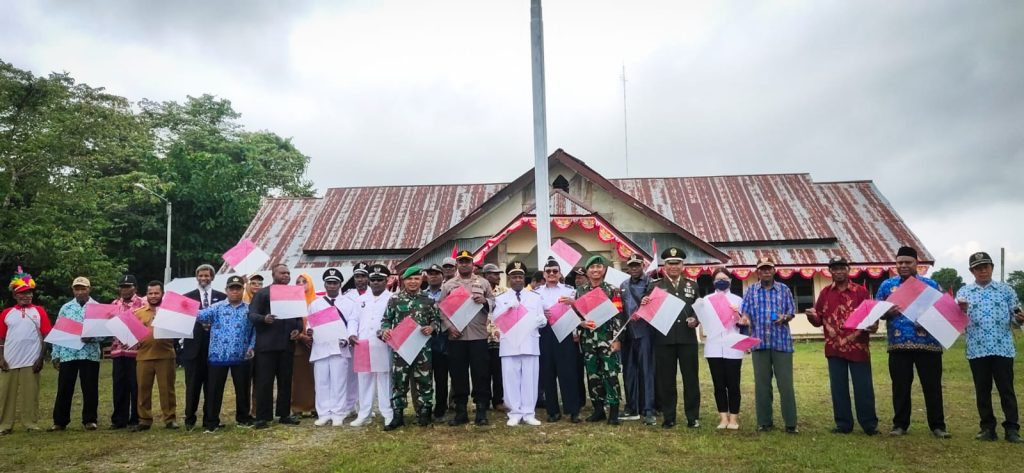 Keerom ~ Memperingati HUT RI ke 78, Satgas Yonif 310/KK bersama warga perbatasan menerbangkan 1000 layang-layang bernuansa merah putih, di Distrik Senggi Kabupaten Keerom, Papua, Kamis (17/8/2023).