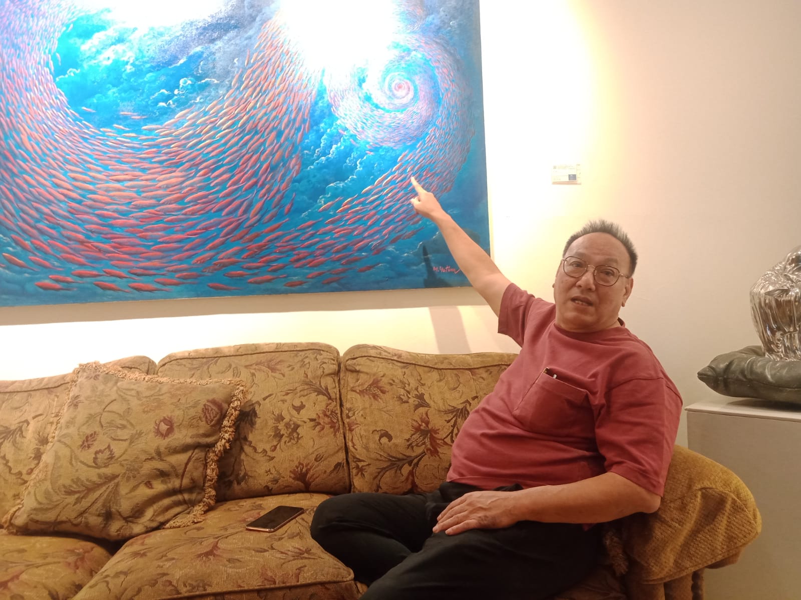 Karyadi juga menjelaskan tentu nya lukisan karya M.Yatim itu mengandung filosofi tinggi yang berisi misteri angka sembilan. Angka sembilan itu merupakan angka unik dan mengandung misteri karena angka berapa pun jika di kalikan sembilan hasil nya jika di tambahkan akan sembilan. Karyadi mencontohkan jika 9 di kali 2 itu hasilnya 18. Nah angka 1 dan 8 jika di tambahkan hasilnya akan 9 juga. Begitu pula dengan angka yang lain seperti jika 9 di kali 5 sama dengan 45 atau 9 di kali 9 hasilnya 81. Itu lah kandungan filosofi yang terkandung dalam lukisan karya M Yatim ini”, tutup Karyadi.