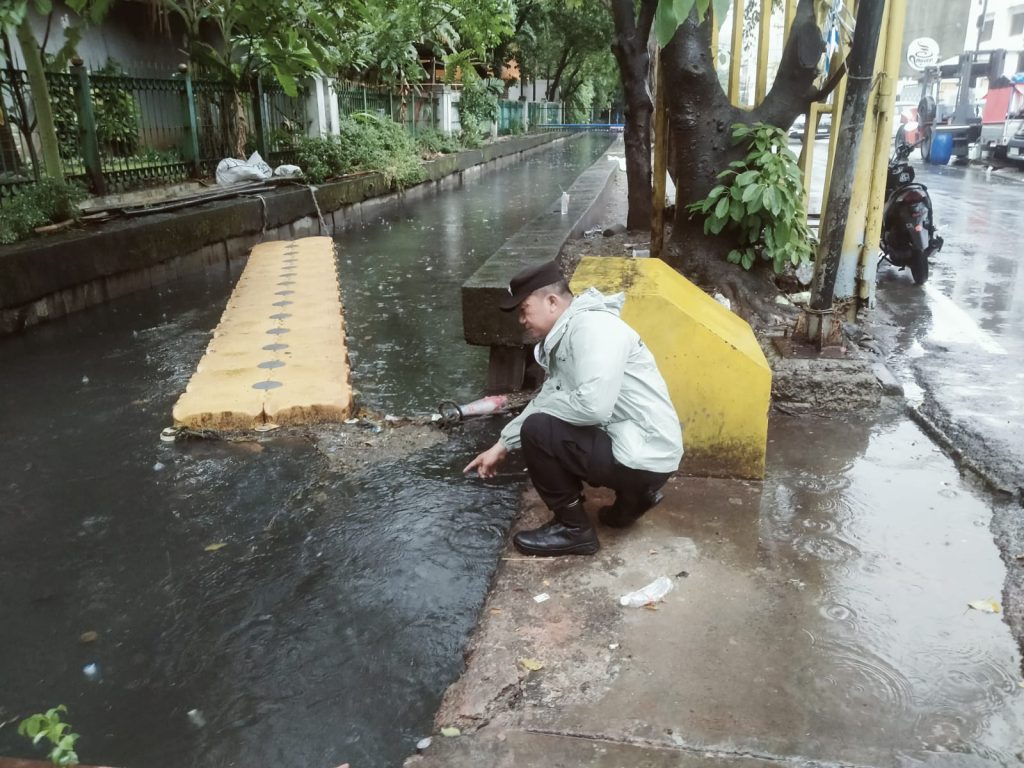 Pengecekan dilakukan di beberapa lokasi yang berpotensi mengalami genangan maupun pohon tumbang, seperti Jl. Taman Sari Raya dan Jl. Mangga Besar 2.