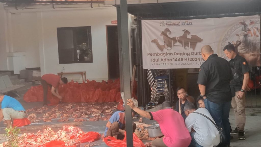 DETEKSIJAYA.COM – Pengadilan Negeri Jakarta Pusat (PN Jakpus) menggelar perayaan Idul Adha 1445 H/2024 M dengan penuh khidmat di halaman Masjid Al-Hikmah hari ini, PN Jakpus. Rabu (19/6/2024). Acara ini menjadi momen bersejarah bagi PN Jakpus yang menyembelih 15 ekor sapi dan 6 ekor kambing sebagai bagian dari ibadah kurban.