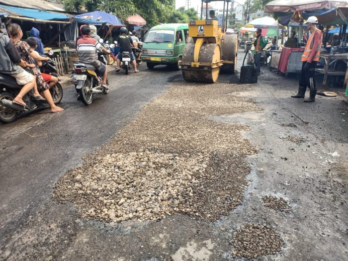 DETEKSIJAYA.COM – Pemeliharaan dan perbaikan jalan antar desa antar kecamatan terus dikebut Dinas PU Bina Marga Sumber Daya Air Kabupaten Sidoarjo. Pada awal Mei tahun 2023 ini terdapat 12 ruas jalan yang sedang dilakukan perbaikan dan pemeliharaan.