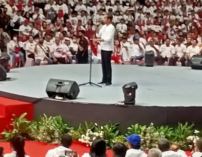 DETEKSIJAYA.COM – Presiden Jokowi Widodo (Jokowi) dengan berapi-api menyampaikan pidato politiknya di hadapan ribuan Relawan Jokowi pada acara puncak Musyawarah Rakyat (MUSRA) di Istora Senayan, Minggu (14/05/23). Jokowi dengan lantang menyampaikan kriteria pemimipin yang diinginkan rakyat Indonesia untuk memajukan bangsa dan negara.