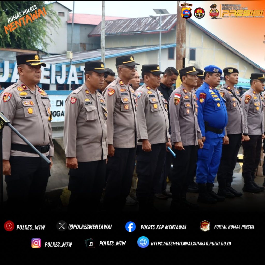Mentawai, DETEKSIJAYA.COM – Polres Kepulauan Mentawai menggelar Apel Pergeseran Pasukan dalam rangka pengamanan Pemilihan Kepala Daerah (Pilkada) Damai 2024. Kegiatan ini berlangsung di Dermaga Tuapejat KM,nol pada hari Jumat (22/11) dan dipimpin langsung oleh Kapolres Kepulauan Mentawai, AKBP Rory Ratno A., S.E., M.M., M.Tr. Opsla.