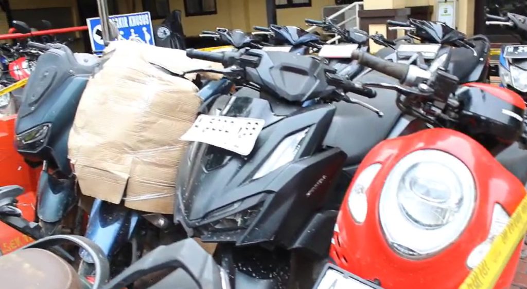 Ke-13 sepeda motor yang diamankan terdiri dari berbagai jenis, termasuk Honda Vario, Scoopy, Beat, serta Yamaha Nmax.