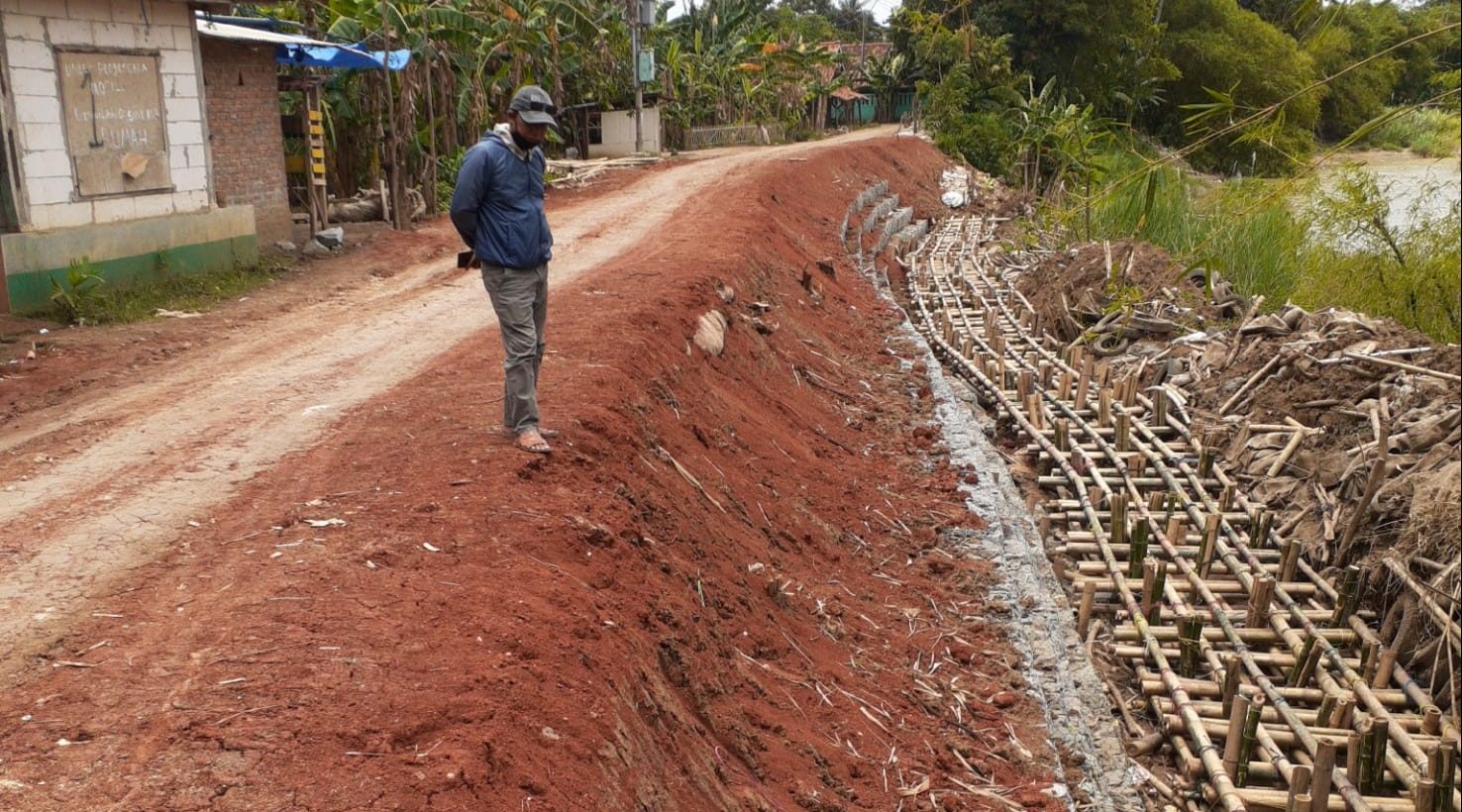 “Untuk pekerjaan ini seharusnya Bronjong ditambah dua tingkat lagi, sehingga dapat menahan tanah, karena dikhawatirkan jika ada hujan maka tanahnya akan longsor lagi,” tegas Syahjan.