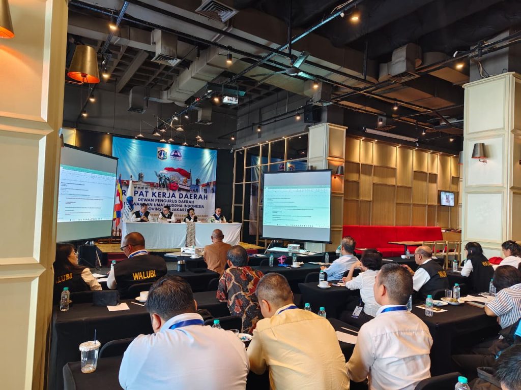 Jakarta, DETEKSIJAYA.COM – Sabtu (11/10/2025). Pengurus Perwakilan Umat Buddha Indonesia (WALUBI) Provinsi DKI Jakarta menggelar Rapat Kerja Daerah (Rakerda) bertema “WALUBI berdaya memperkuat kebersamaan, mengabdi untuk NKRI menuju Jakarta kota global dan berbudaya” di Hotel Sparks Life, Mangga Besar, Jakarta. Forum ini menegaskan komitmen WALUBI untuk menghadirkan program keagamaan dan sosial yang inklusif, berdaya guna, dan sejalan dengan visi Jakarta sebagai kota global dan berbudaya.