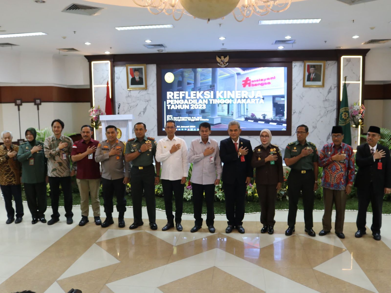 DETEKSIJAYA.COM – Pengadilan Tinggi (PT) DKI Jakarta menggelar Refleksi Kinerja Tahun 2023, Kamis (4/1/2023) yang berlangsung secara hybrid. Hadir Ketua PT DKI Jakarta, Herri Swantoro bersama jajaran, Plt. Ketua Ketua Komisi Pemberantasan Korupsi (KPK) Nawawi Pomolango, dan Pj. Gubernur DKI Jakarta Heru Budi Hartono.