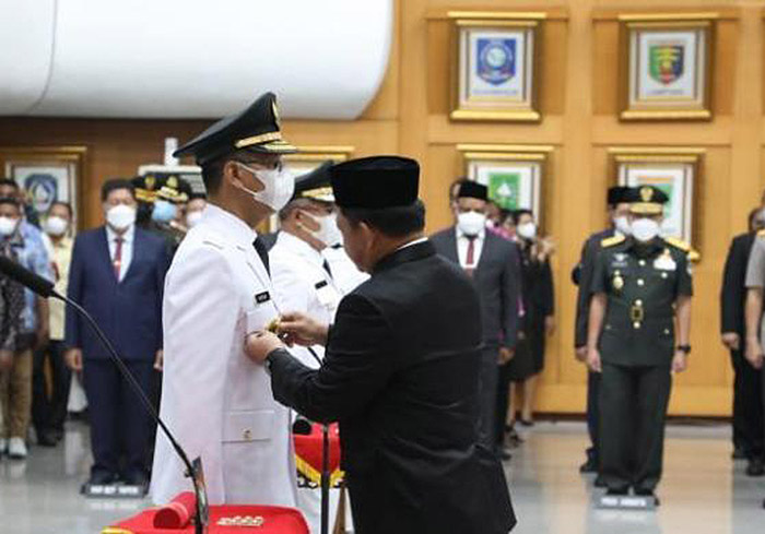 Heru dilantik Menteri Dalam Negeri, Tito Karnavian dalam acara yang digelar di gedung Sasana Bhakti Praja, Kementerian Dalam Negeri, Senin (17/10/2022).