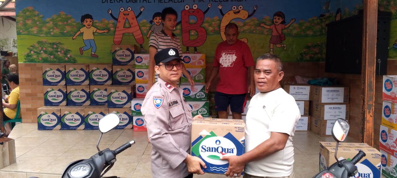 Bantuan yang disalurkan melalui Bhabinkamtibmas Kelurahan Mangga Besar, Aipda A. Siregar, antara lain 22 dus air mineral, 22 dus mie instan, serta 1 dus kopi sachet.