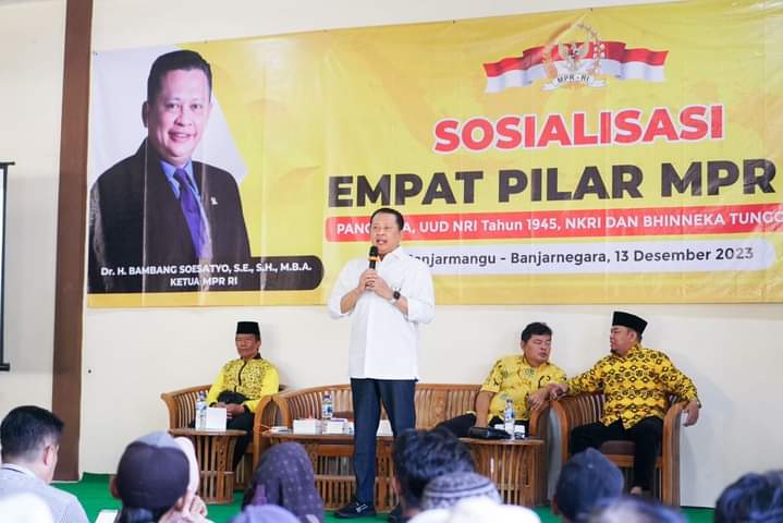 BANJARNEGARA, DETEKSIJAYA.COM – Ketua MPR RI sekaligus Wakil Ketua Umum Partai Golkar dan Legislator DPR RI Dapil 7 Jawa Tengah meliputi Kabupaten Purbalingga, Kabupaten Banjarnegara, dan Kabupaten Kebumen Bambang Soesatyo mengajak masyarakat untuk tidak menjadi Golput dalam Pemilu 2024. Baik Golput sebagai Golongan Putih yang tidak menggunakan hak pilihnya, maupun Golput sebagi Golongan Pencari Uang Tunai yang mengharapkan money politic/”serangan fajar”. Keduanya sama-sama tidak sejalan dengan demokrasi Pancasila yang menekankan nilai dan budaya bangsa, di mana rakyat memiliki kedaulatan dalam arti yang sesungguhnya.