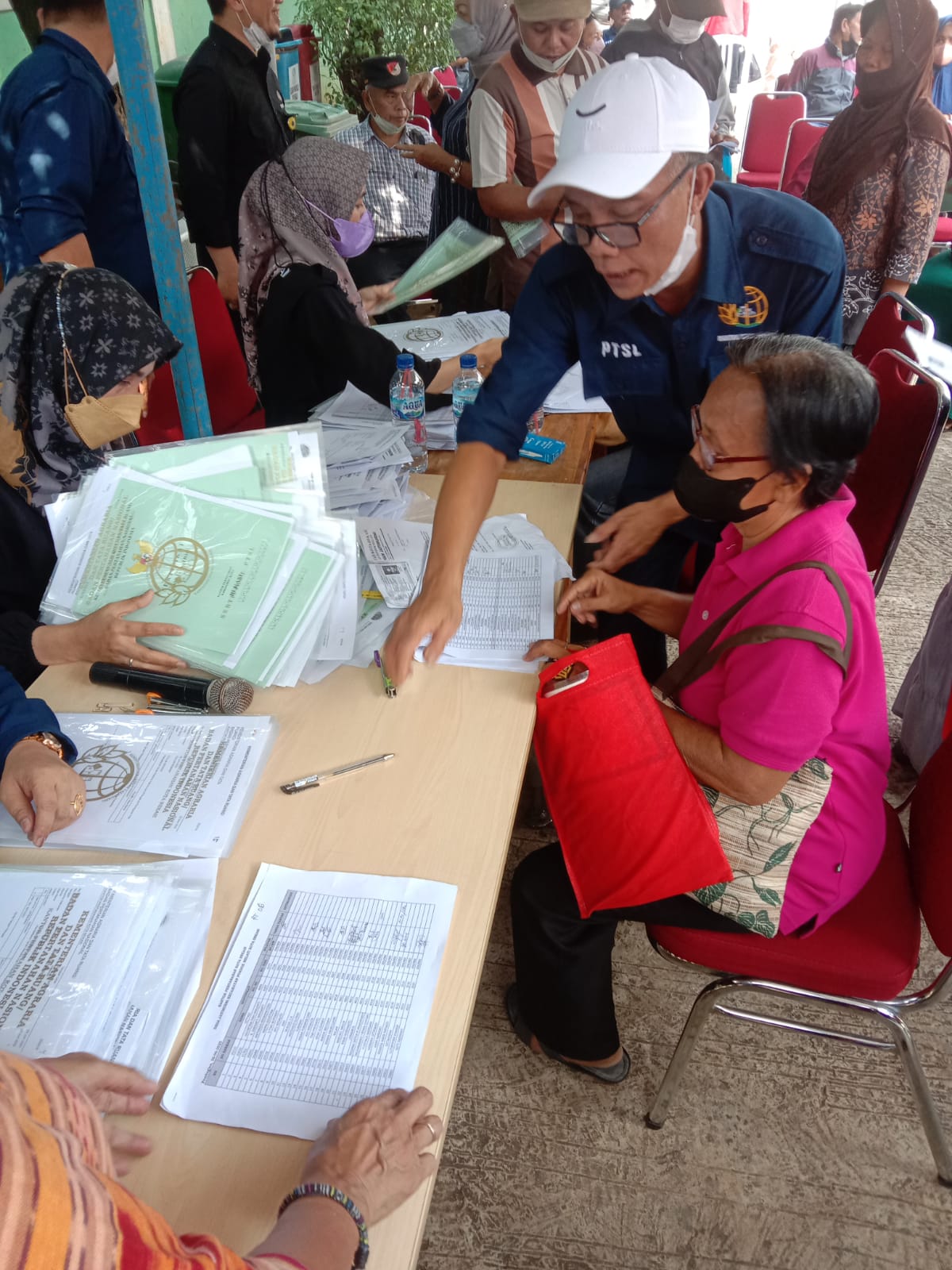 KOTA BEKASI|DETEKSIJAYA.COM- Kepala Kantor (Kakan) Pertanahan ATR/BPN Kota Bekasi sambangi warga, saat agenda awal penyerahan sertifikat program Pendaftaran Tanah Sistematis Lengkap (PTSL) Tahun Anggaran (TA) 2022 yang berlangsung di Halaman Kantor Kelurahan Jatimurni, Kecamatan Pondok Melati, Kamis (30/6/2022).