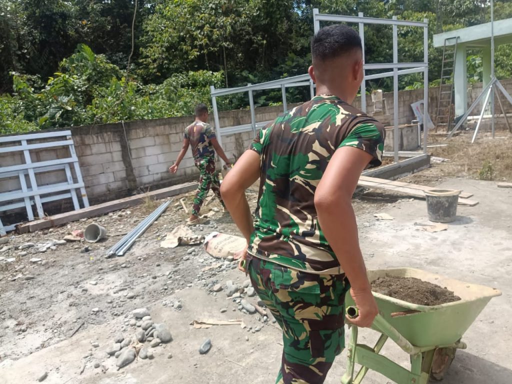 KEEROM – Sebagai bentuk kepedulian dalam mengatasi kesulitan masyarakat perbatasan, Satgas Yonif 310/KK bantu masyarakat bangun Rumah Daya dan Pembangkit Listrik Tenaga Surya (PLTS) untuk Puskesmas, di Kampung Towe Hitam, Distrik Towe, Kabupaten Keerom, Papua, Jumat (18/08/2023)