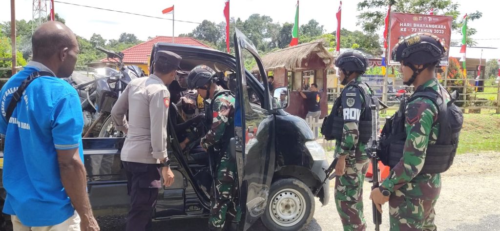 Keerom ~ Satgas Pamtas RI-PNG Yonif 310/KK bekerja sama dengan Koramil 1701-06/Senggi dan Polsek Senggi di jalur trans Papua yang menghubungkan Jayapura-Wamena di Distrik Senggi Kabupaten Keerom. Kegiatan ini dilakukan dalam upaya menjaga keamanan dan mencegah penyelundupan barang ilegal dan narkoba, Senin (14/8/2023).